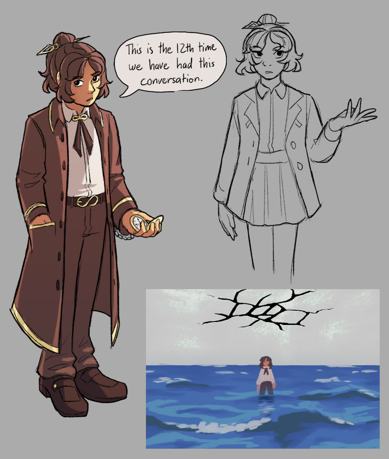 Due to witnessing tragic events across various timelines, she has become a jaded person. She dislikes wasting time in conversation and tends to be short and direct with her words. She uses knowledge attained from other timelines in order to influence people the way she wants.