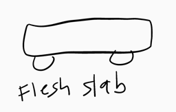 He revealed himself through bloody text and then showing up as a bloody flesh slab on wheels.